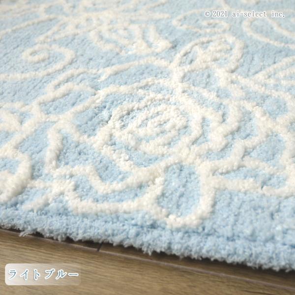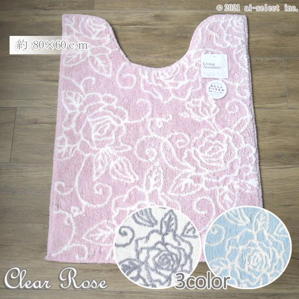 ai 即納 トイレマット 胴長 ロング あすつく 単品 エレガントな薔薇模様 クリアローズ 選べる3色 ホワイト / ライトピンク / ライトブルー バラ柄 ローズ