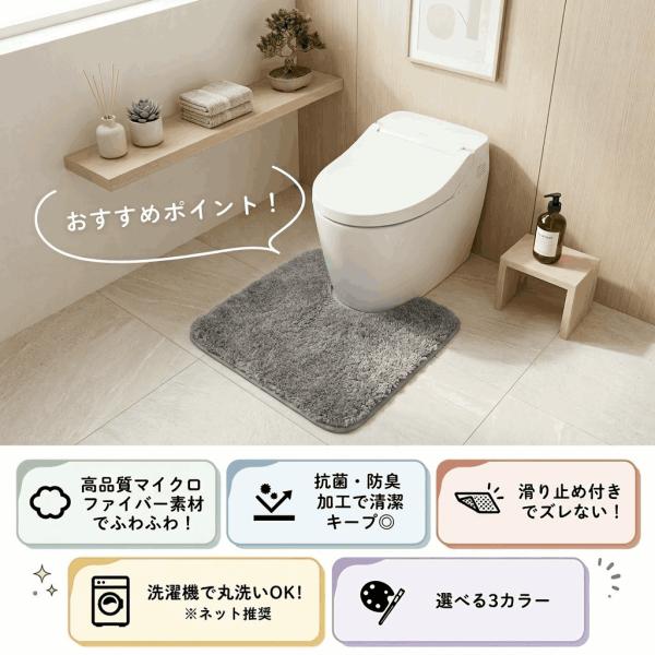 トイレマット 洗える おしゃれ ふわふわ 滑り止め加工 吸水性 柔らか 快適 U字型 トイレ用品