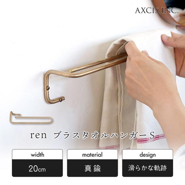 4/12はP最大17%還元! ren ブラスタオルハンガー S タオルハンガー タオル掛け おしゃれ 真鍮 20cm バスタオル バスマット DIYトイレ L2176 アクシス AXCIS