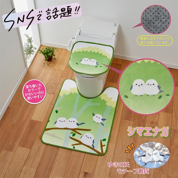 雪の妖精 シマエナガトイレ蓋カバー グリーン シマエナガ トイレ ふたカバー 節電 あったか 雪の妖精 吸着 滑り止め 生活雑貨 日用 おしゃれ Eclea 爆売 爆買