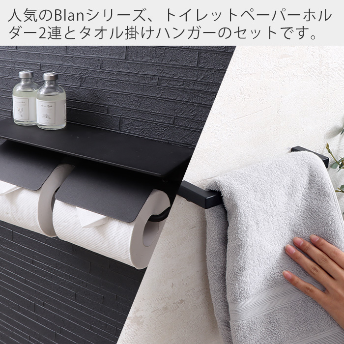 4/11は最大P+5%還元! トイレットペーパーホルダー タオルハンガー セット おしゃれ 2連 掛け diy ダブル 棚 アイアン ブラック ホワイト ブラン Blan ヤマソロ