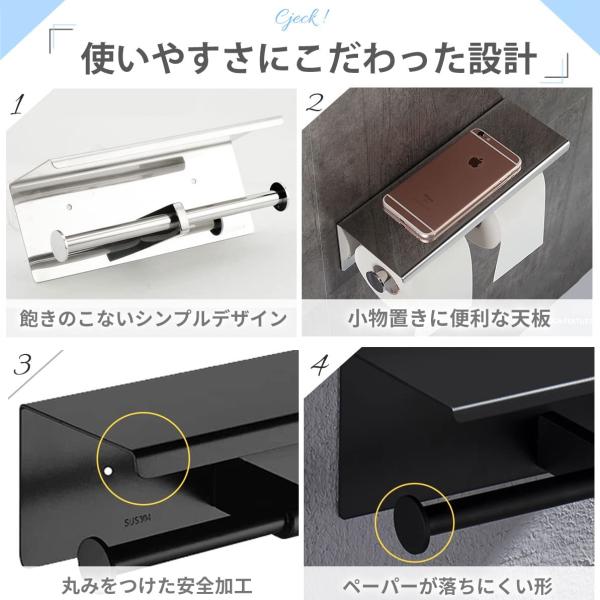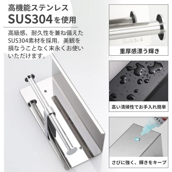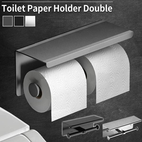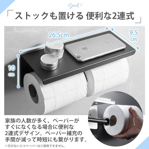 トイレットペーパーホルダー 2連 北欧 【インテリアコーディネーター推薦】 ブラック シルバー シンプル おしゃれ 工事不要 取り付け簡単 2年正規保証
