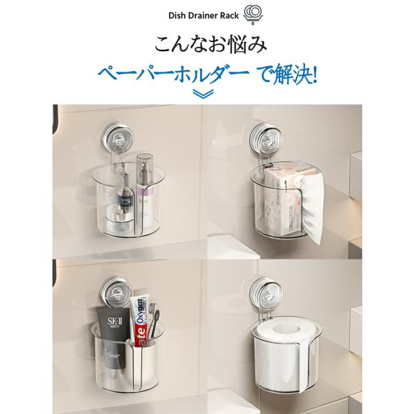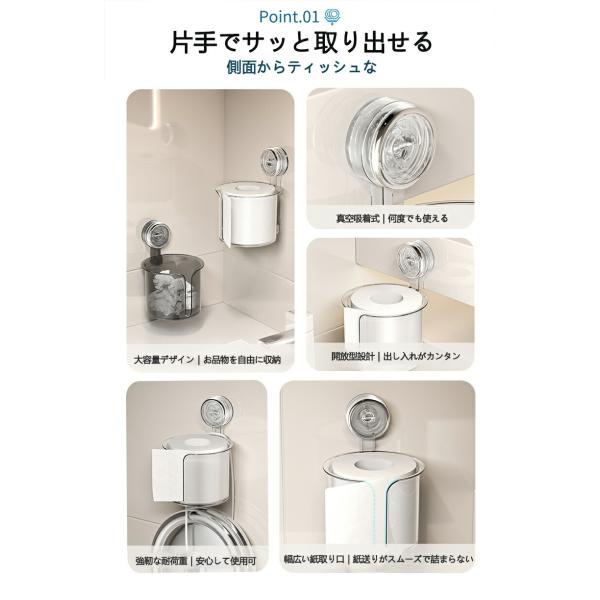 トイレットペーパーホルダー キッチン ペーパーホルダー 吸盤式 ロールペーパー ティッシュボックス ティッシュホルダー ティッシュケース 箱ティッシュ ケース