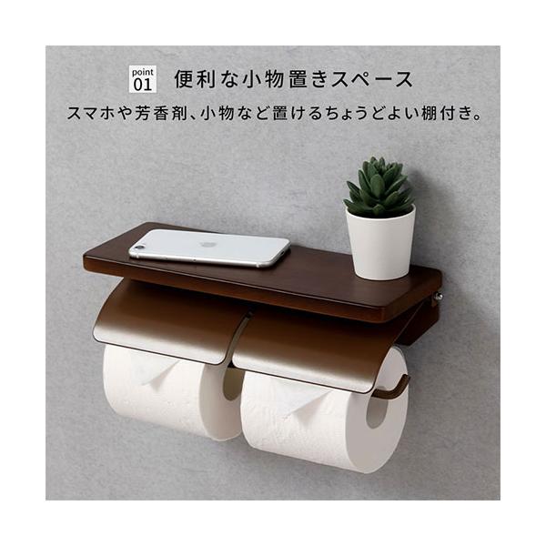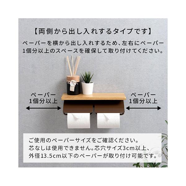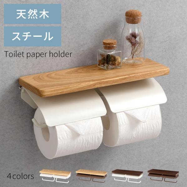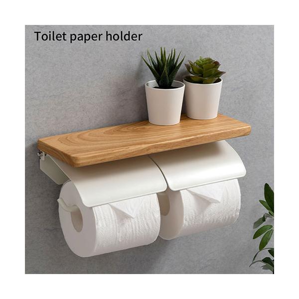 棚付き ペーパーホルダー トイレットペーパーホルダー 2連 飾り棚 天然木 スチール 2倍巻 3倍巻 太巻き 収納 簡単 DIY リノベ 賃貸