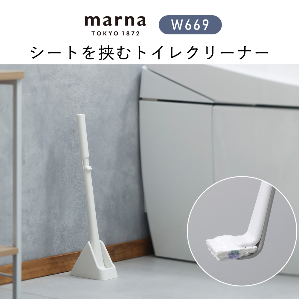 marna マーナ シートを挟むトイレクリーナー W669W ケース付き 抗菌 ワンタッチ コンパクト 自立 使い捨てシート フチ裏に届く 便器 掃除