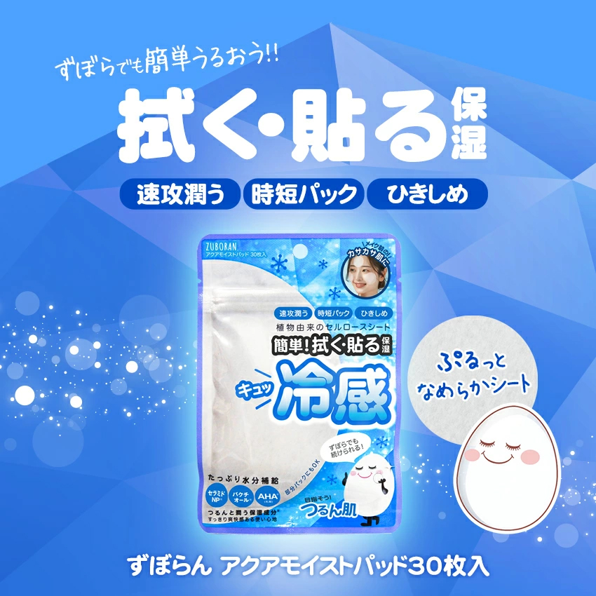 トナーパッド ずぼらん アクア モイスト パッド 【 2袋セット 】 30枚 拭き取り 化粧水 パック ゼリーパッド バクチオール ノンアルコール 保湿 韓国 爆買