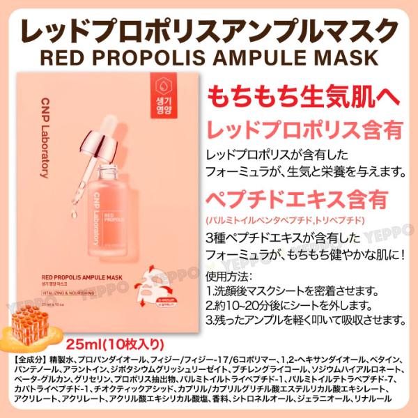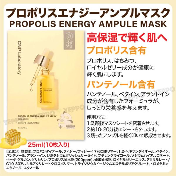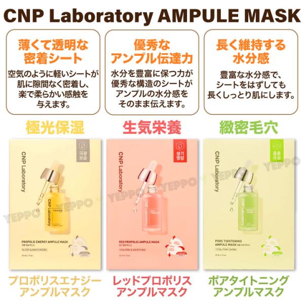 【3箱選択】CNP アンプル シート マスク 1箱=10枚入(プロポリス/レッドプロポリス/ポアタイトニング/ミュゲナー/ビタエナジー)チャアンドパク 韓国コスメ