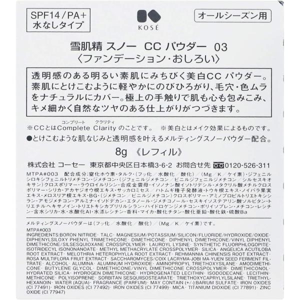 【レフィル】コーセー 雪肌精 スノー CC パウダー 8g 全3色