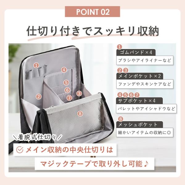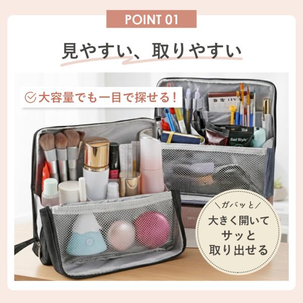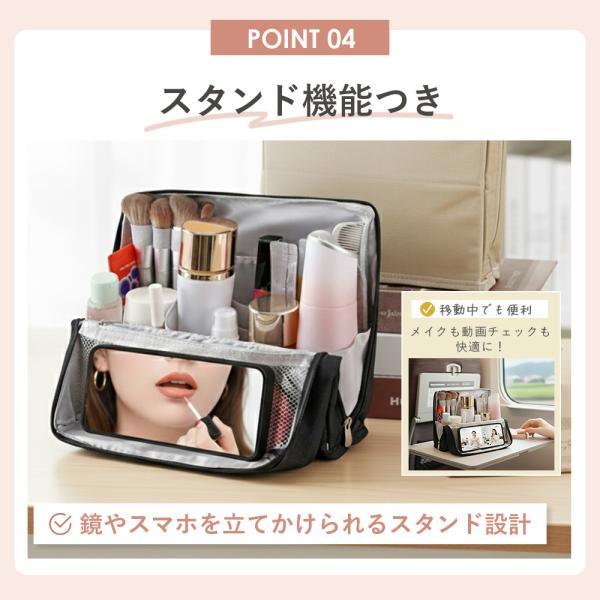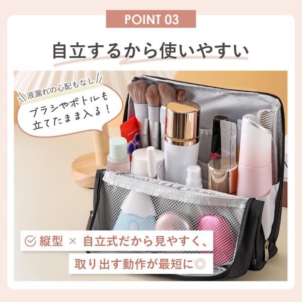 メイクポーチ 化粧ポーチ バニティ 縦型 大容量 自立 大きめ 機能的 仕切り付き ブラシ入れ バニティケース