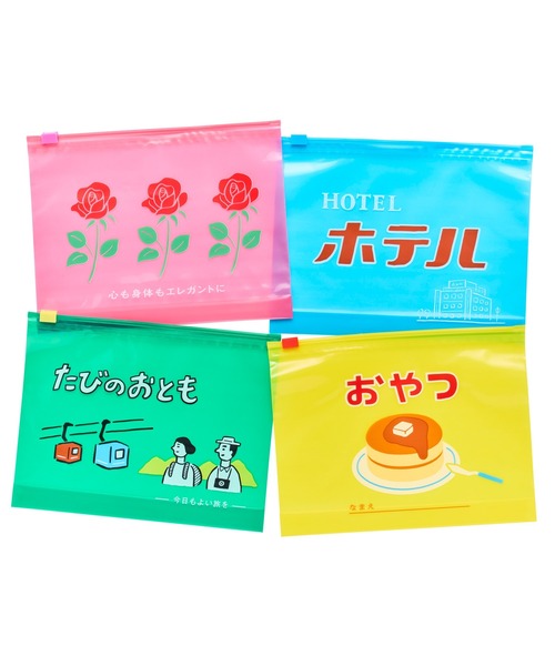 ポーチ ニューレトロ ジッパーバッグ ジップケース ポーチ スクエア クリア 透明 4枚セット Lサイズ レディース メンズ