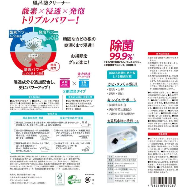 クリーンプラネット 風呂釜のカビ丸洗浄 A剤200g、B剤25g 単品