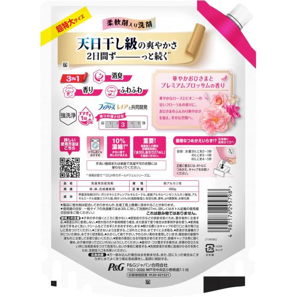 Bold ボールド 柔軟剤入り 洗濯洗剤 液体 華やかおひさまとプレミアムブロッサムの香り 詰め替え 690g 超特大