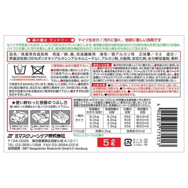緑の魔女 洗濯洗剤 本体 洗剤 業務用 5kg 3本セット まとめ買い 3個セット 衣類 ランドリー ミマスクリーンケア パイプクリーナー 液体洗剤