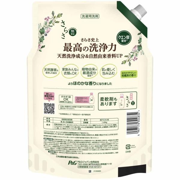 洗濯洗剤 さらさ 洗剤 詰め替え 1490ml 3個セット 衣類用洗剤 さらさ洗剤ジェル つめかえウルトラジャンボサイズ 無添加 クエン酸 消臭 赤ちゃん P&G