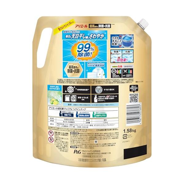 アリエール 洗濯洗剤 液体 超抗菌プレミアム 最高傑作の除菌+抗菌 詰め替え 1580g [大容量]