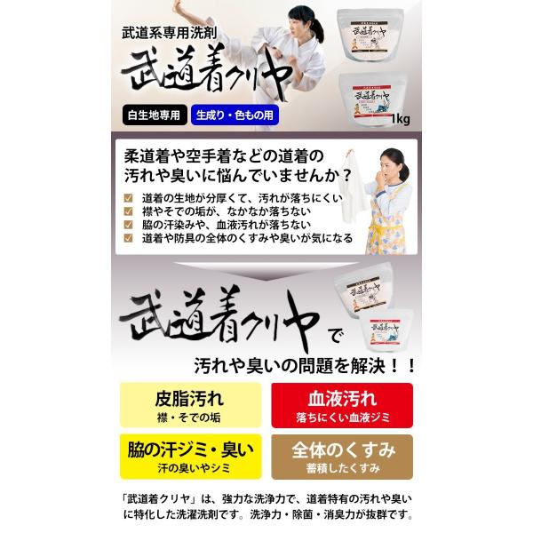 道着 用 洗濯 洗剤 「武道着クリヤ 1kg (白生地専用 生成り・色もの用)」柔道 空手 剣道 除菌 消臭