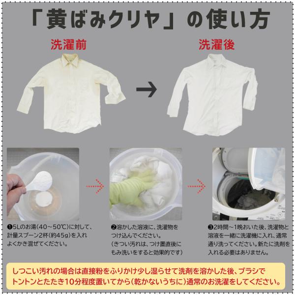 洗濯洗剤 黄ばみ 用 「黄ばみクリヤ 360g」 Tシャツ 襟 衿 手首 袖口 汗染み シーツ 枕 カバー 粉末洗剤