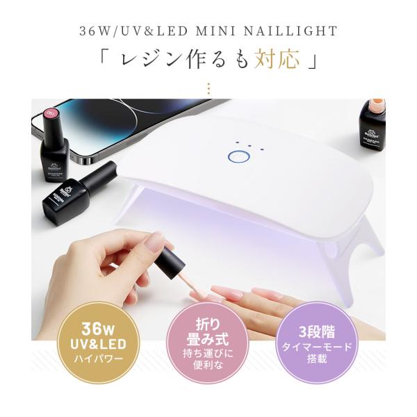 ネイルライト 折りたたみ式 LED UVライト タイマー機能 3段階 ジェルネイル セルフネイル 36W 139g 鞄入れられ