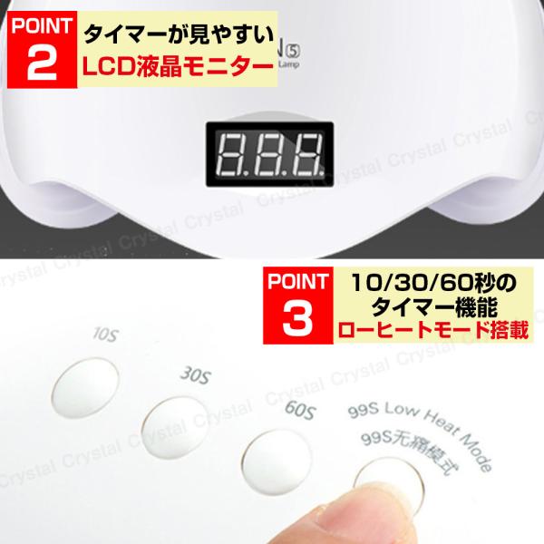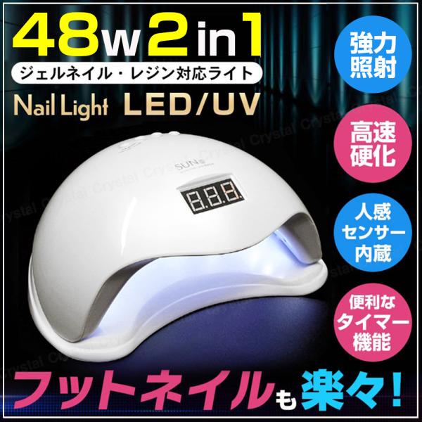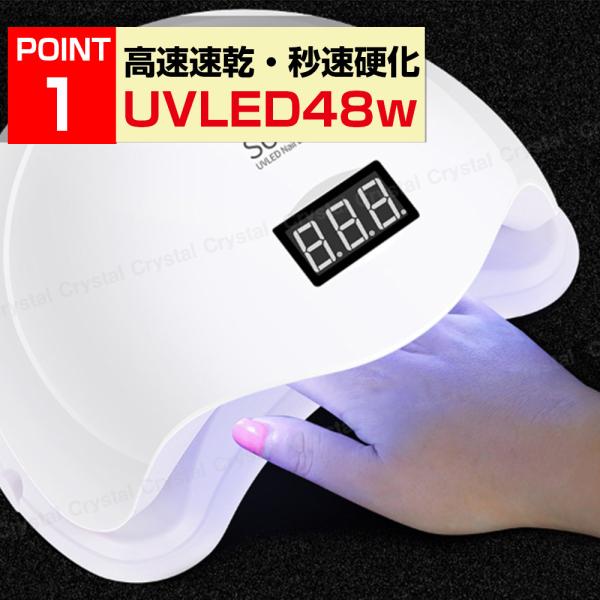 ネイルライト 48w UV LED ジェルネイル UVライト 速乾 秒速硬化 強力照射 ローヒート モード搭載 二重光源 人感 タイマー レジン