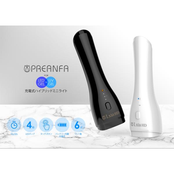 ネイルライト プリジェル レクシア ハンディ LEDライト 6W ブラック ホワイト ジェルネイル セルフ 硬化ライト USB 充電式 コードレス 持ち運び 軽量