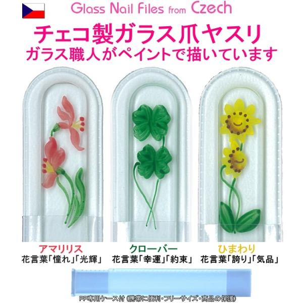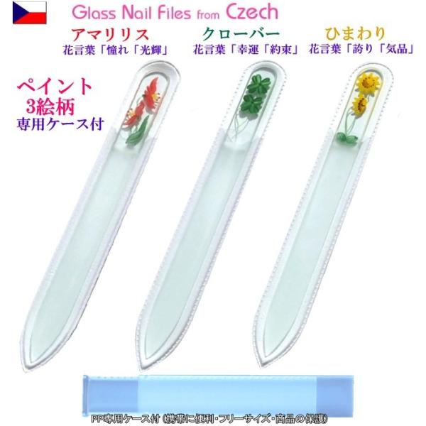 爪ヤスリ チェコ製 ガラス14cmM ペイント絵柄 L両面仕上げ 専用 ケース付 ヤマトDM便対応