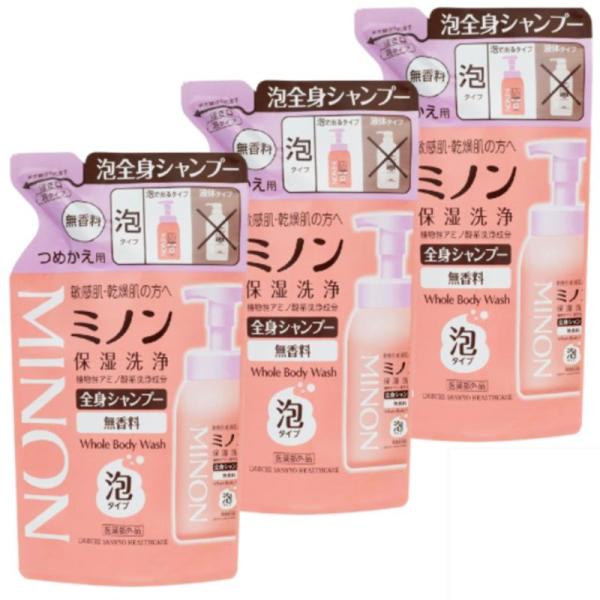 【乾燥・敏感肌に、肌ケア泡ソープ】 ミノン 全身シャンプー 泡タイプ 詰替用 400mL×3 /低刺激 シャンプー / 美容オイル / アトピー ボディソープ