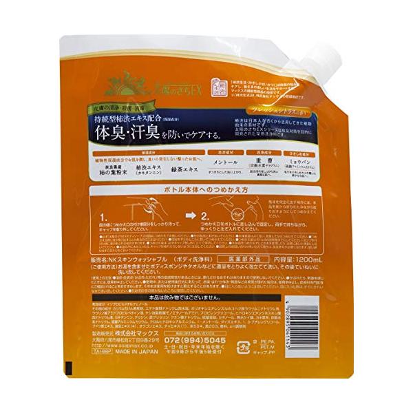 【医薬部外品】 薬用太陽のさちEX 柿渋ボディソープ 大容量 詰替え用 1.2リットル (x 1)