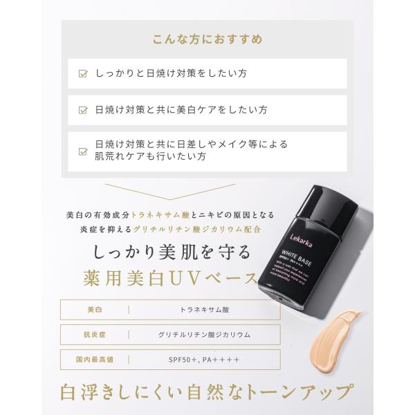Lekarka 公式 薬用美白UV下地 30g | 医薬部外品 | 化粧下地 日焼け止め UV SPF50+ PA++++ トラネキサム酸 グリチルリチン酸2K 美白 シミ ウォータープルーフ