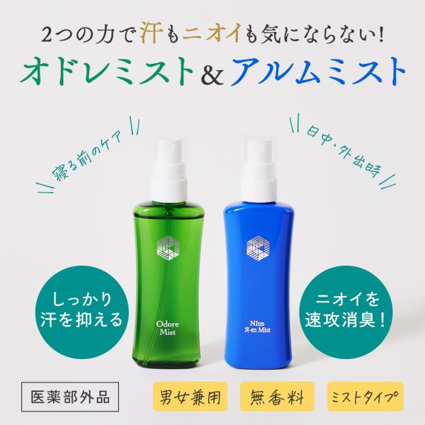 オドレミスト 53ml 詰替え用・ミストポンプなし & アルムミスト 50mlのセット nprm 足 ワキガ 加齢臭 無香料 odoremist