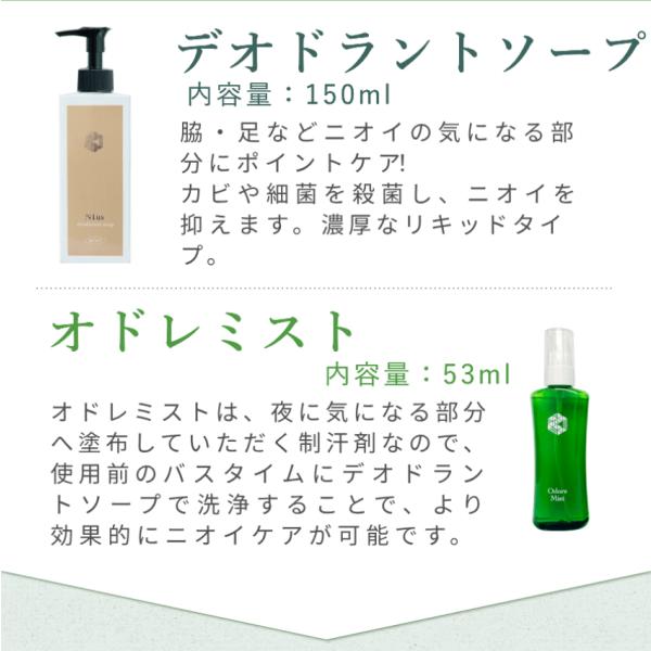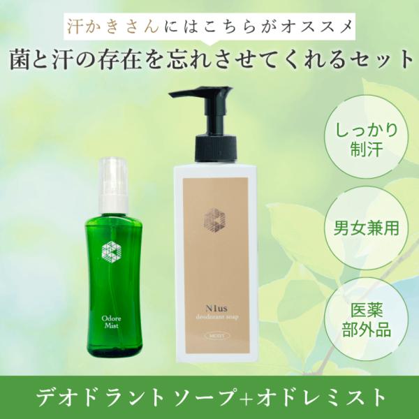 オドレミスト 53ml N1us デオドラントソープ (しっとり)150ml セット odds(白) ゼラニウムヴァーベナの香り ミコナゾール硝酸塩 汗臭 足臭 加齢臭
