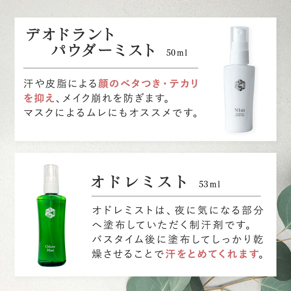 脇汗ブロックする オドレミスト53ml & 顔のテカリを抑える N1us デオドラントパウダーミスト 2点セット サラサラキープ 医薬部外品 5cmゆうパケット発送