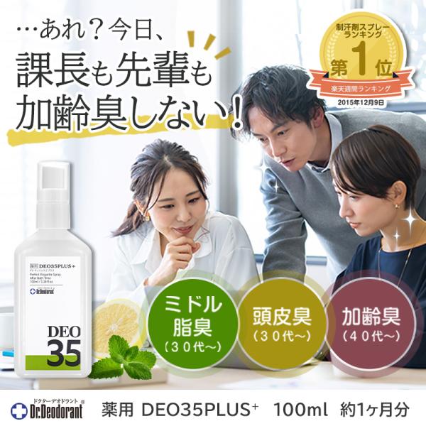 加齢臭 頭皮臭 対策 消臭 スプレー 薬用デオ 35プラス ドクターデオドラント 加齢臭を消す ミドル脂臭 オトナ臭 メンズ 男性 女性 薬用DEO 35PLUS+