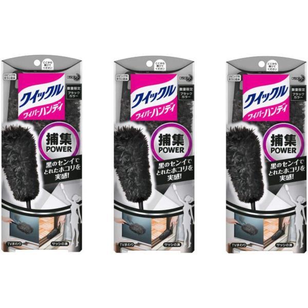 3個まとめ買い 花王 クイックルワイパー ハンディ ブラックカラー 本体 <黒の繊維で、360°瞬間キャッチ!>(ネコ)