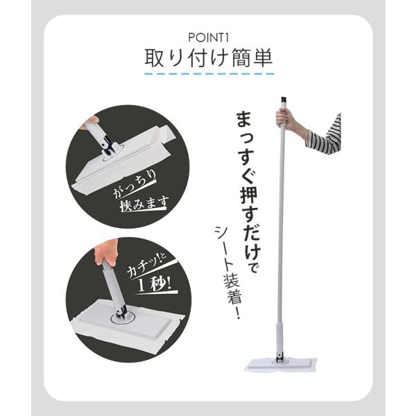 フロアワイパー フローリングワイパー 本体 おしゃれ 伸縮 掃除ワイパー 手が汚れない 床掃除 / ノータッチワイパー フレーヌ ロング