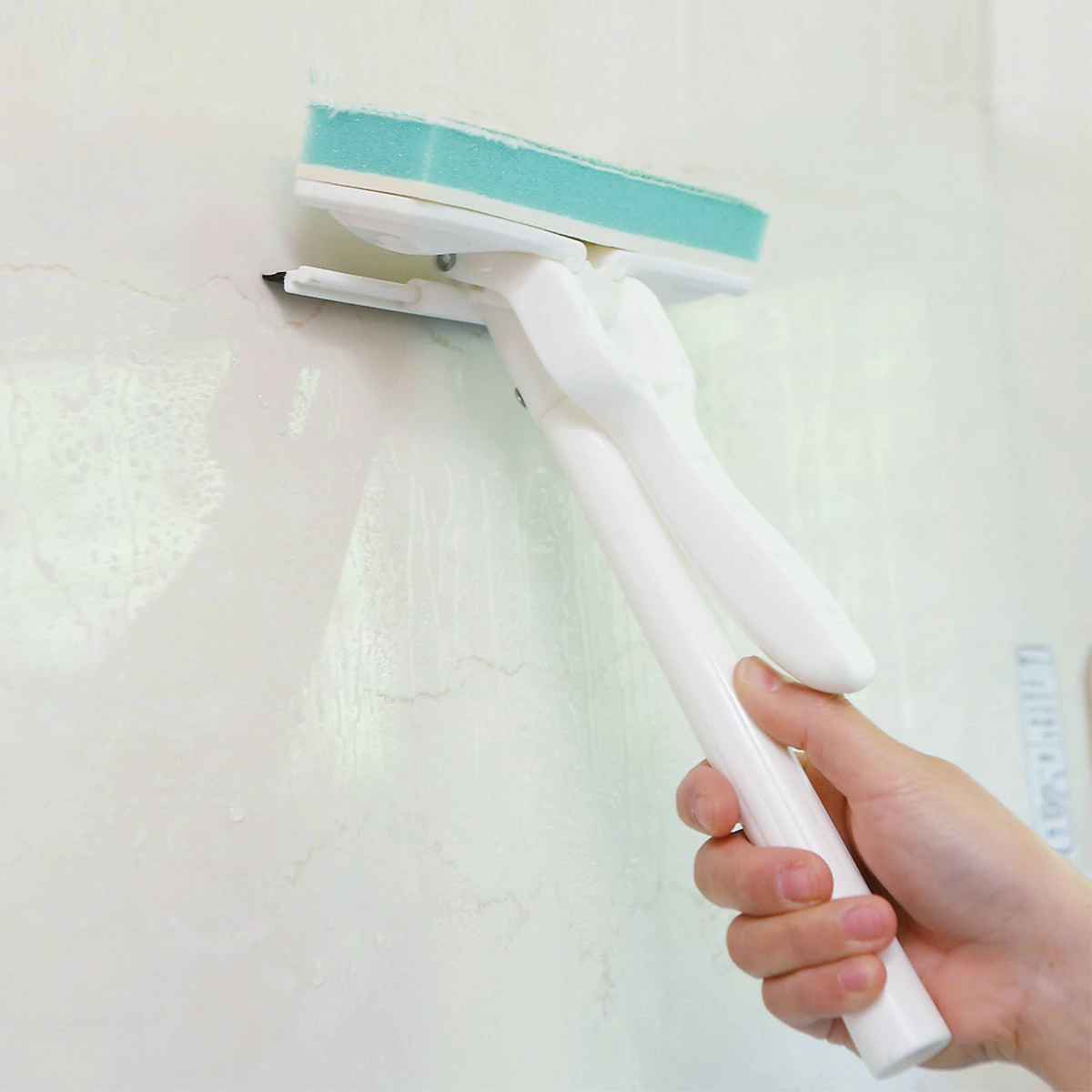 浴室 ワイパー 掃除 楽絞りワイパー カビ取り 全長82cm 水だけで洗える ( 浴室掃除 風呂掃除 バススポンジ 水切りワイパー 絞れる 柄付き 天井 )