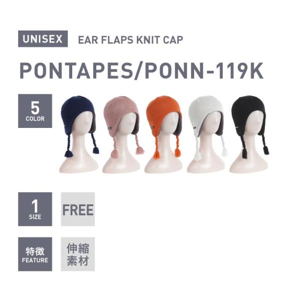 ジュニア イヤーフラップ ビーニー ニット帽 耳あて 子供 キッズ 帽子 防寒 雪遊び スノー スキー PONTAPES/ポンタぺス PONN-119K