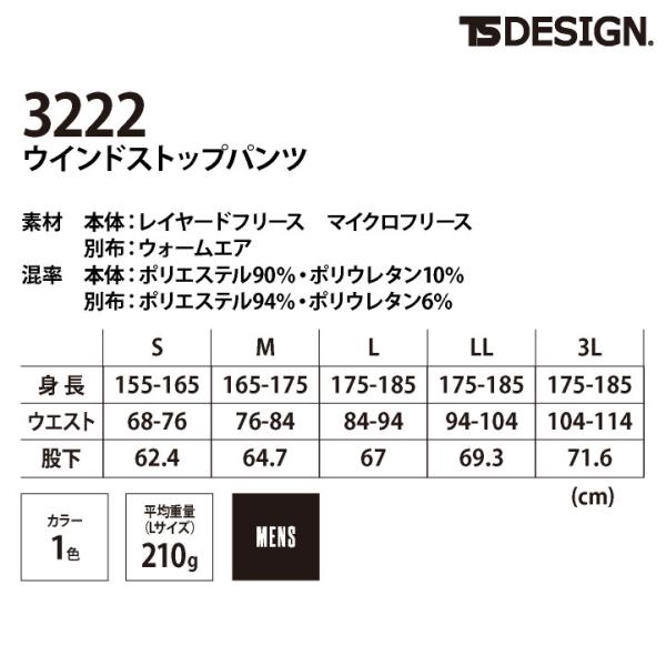 TS-DESIGN 藤和 インナー パンツ 秋冬 メンズ 防風 保温 通気性 蒸れない 暖かい 防寒 作業服 仕事服 おしゃれ tw-3222