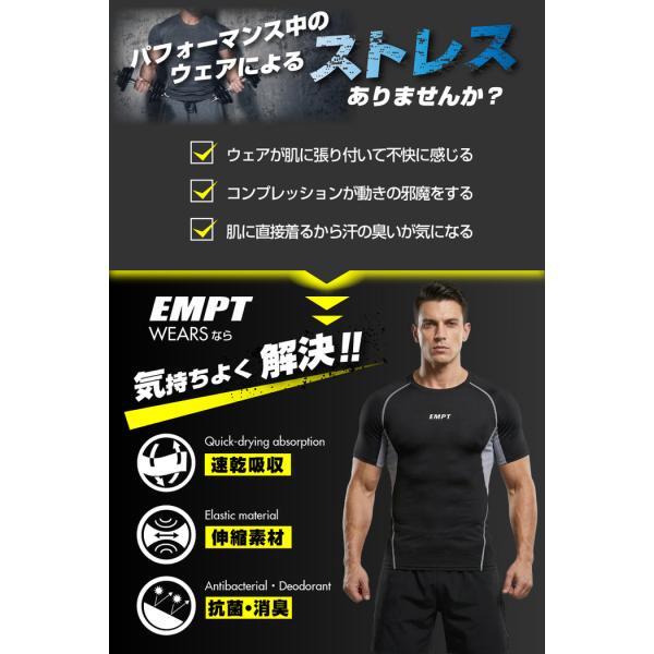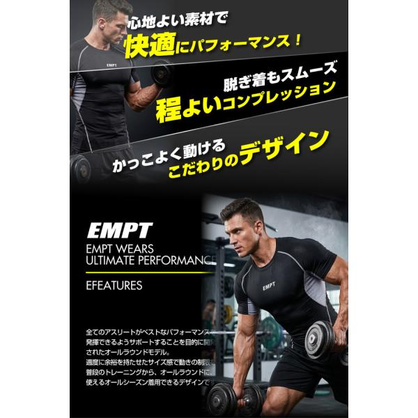 EMPT コンプレッションウェア メンズ 半袖 スポーツウェア インナーシャツ スポーツシャツ インナー トレーニングウェア コンプレッションインナー スポーツ