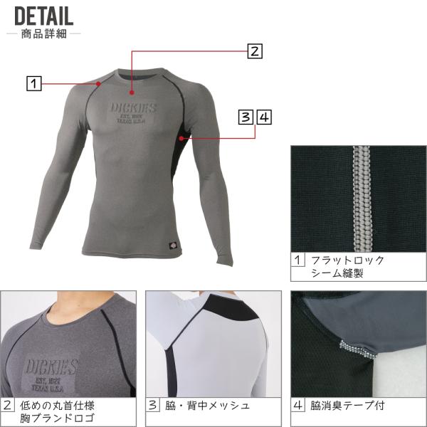 Dickies ディッキーズ D-2098 通年 吸汗速乾 通気性 ストレッチ 消臭 コンプレッション メンズ インナー