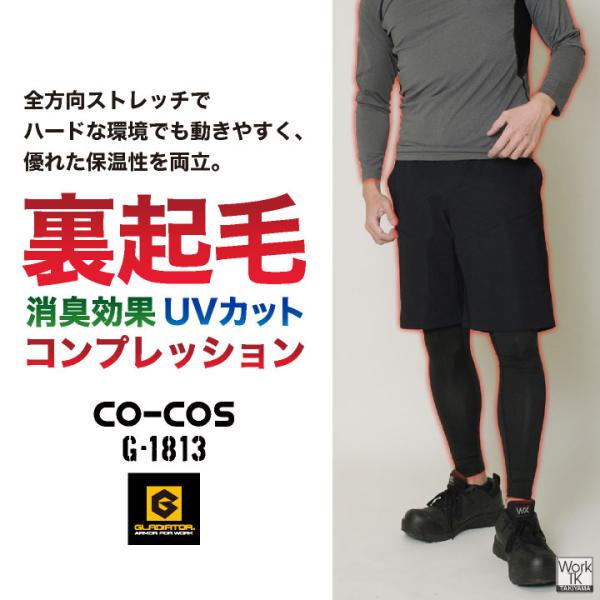 コーコス 裏起毛 ストレッチ インナー パンツ 暖かい 秋冬 防寒 UVカット 消臭 薄手 レギンス メンズ レディース 作業着 (ネコポス) cc-g1813