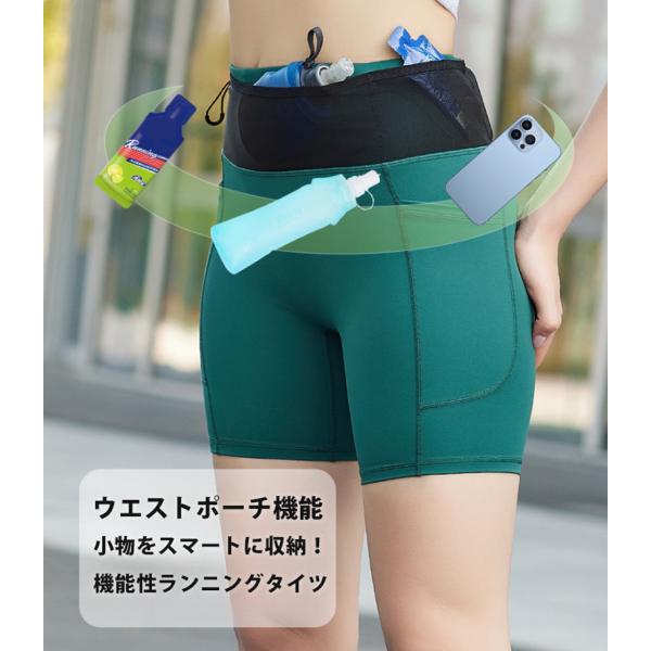ランニングパンツ ハーフタイツ レギンス ショートパンツ ウエストメッシュポケット スパッツ レディース スポーツ 超軽量 クイックドライ ハーフパンツ