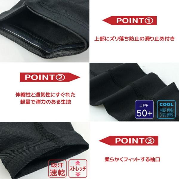 アームカバー 冷感 滑り止め付き 夏用 紫外線対策 UVカット UPF50+ ひんやり 腕カバー アームウォーマー メンズ 屋外作業 サイクリング保護 日焼け止め