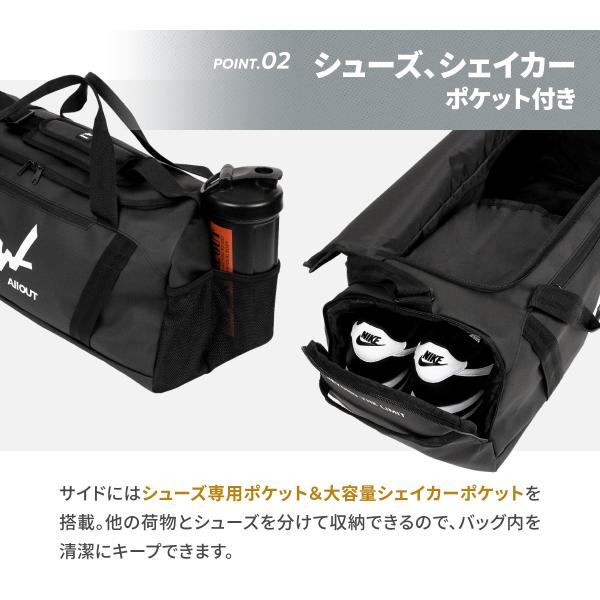 ALL OUT トレーニングバッグ ダッフルバッグ ジムバッグ 2way 防水 シューズ収納 大容量 正規品 ポイント利用 爆買