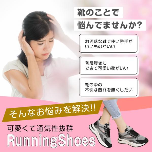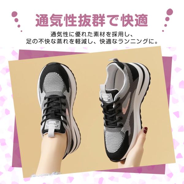 ランニングシューズ スニーカー レディース 厚底 幅広 通気性 運動 靴 黒 グレー 可愛い 軽い 軽量 安い