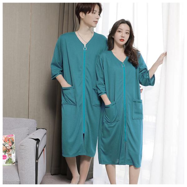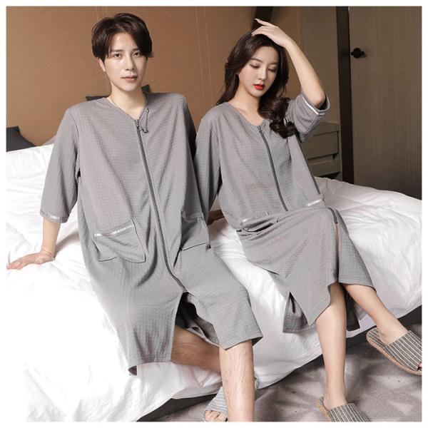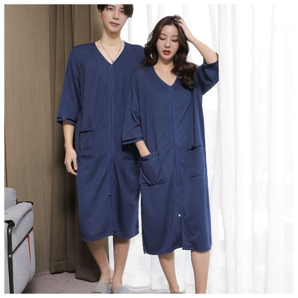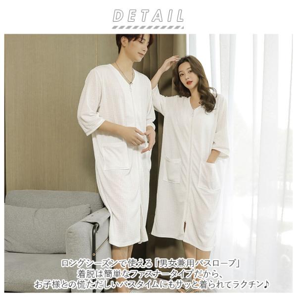 バスローブ 通販バスローブ ワッフル 薄手 薄地 レディース ママ メンズ ユニセックス 男女兼用 ガウン ナイトガウン 前開き ファスナー ジッパー バスローブ