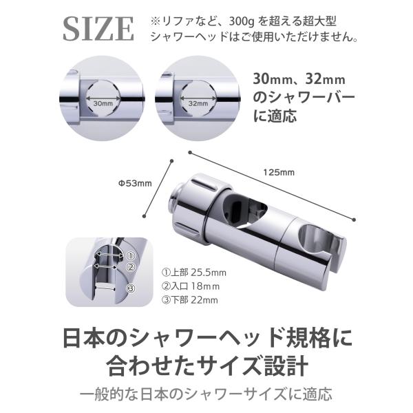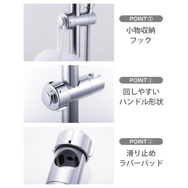 シャワーフック 日本サイズ規格品 シャワーバー お取替え用 後付けタイプ 360度角度調整