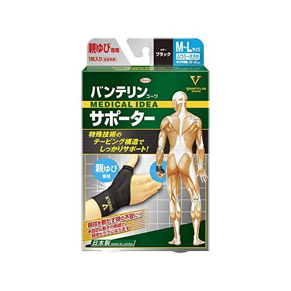 バンテリンコーワサポーター 親ゆび専用 ふつう~大きめ/M~Lサイズ(手の甲周囲 19~21cm) ブラック