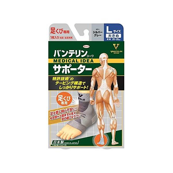 バンテリンコーワサポーター 足くび専用 大きめ/Lサイズ(足長 26~28cm) シルバーグレー