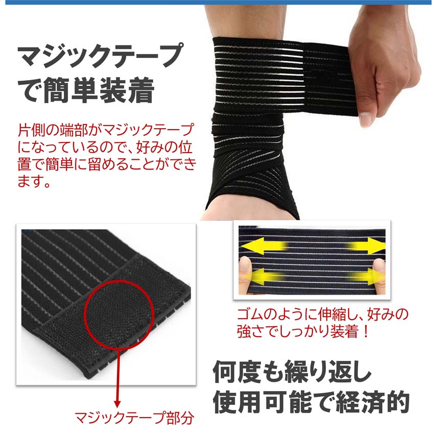 ラップ サポーター 長さ100cm テーピング マジックテープ式 伸縮 スポーツ 包帯 プロテクター 固定 足首 膝 腕 腰 肩 手首 ブラック ベージュ sp009