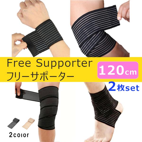 フリーサポーター 120cm 2本セット 手首 肘 足首 膝 脚 太もも ふくらはぎ テーピング バンテージサポーター